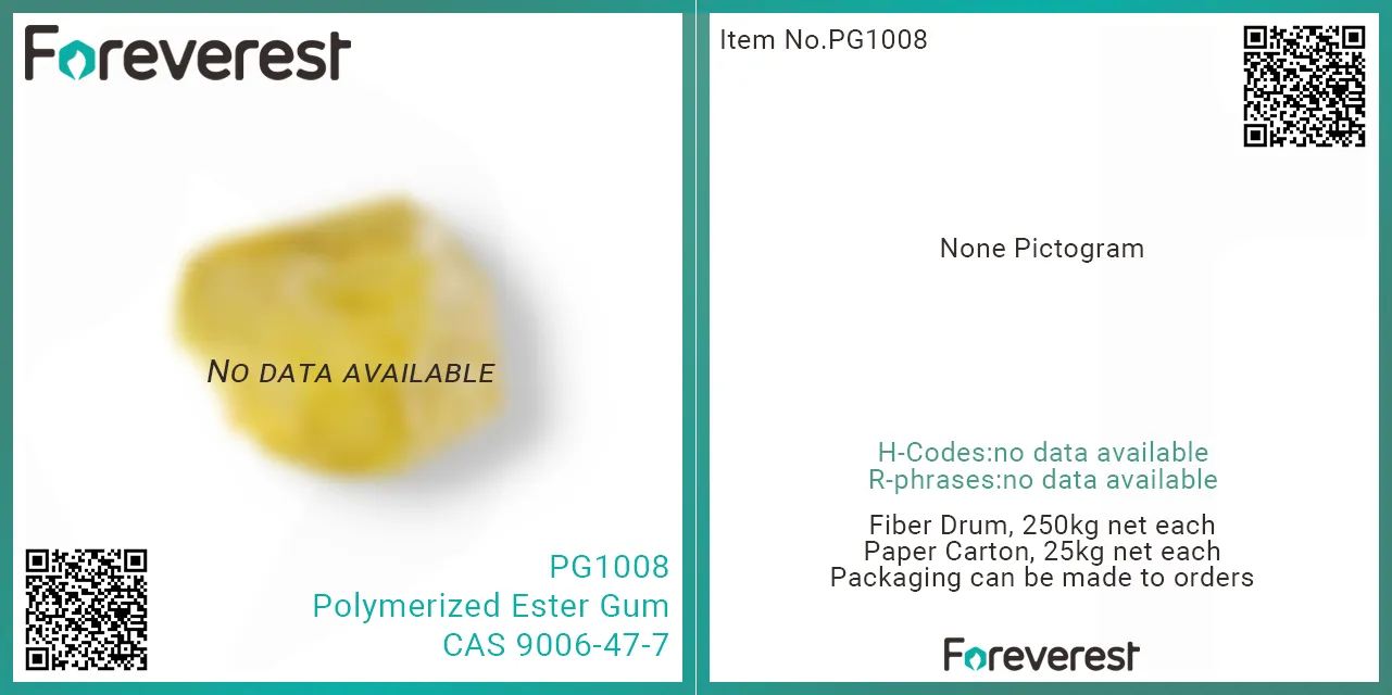 Glycerin Ester of Polymerized Rosin (Polymerized Ester Gum) is a kind of light yellow transparent solid which is esterified with refined special grade polymerized rosin and food grade glycerin.
